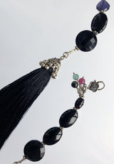 This delicate Black Tassel was hand made using durable and high-quality materials, as well as natural semiprecious stones, silver, silk.