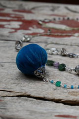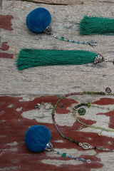 Complete the set with silk tassels of emerald and winter blue pompons to make the holiday shine with oriental lights.