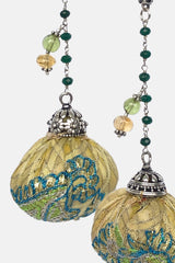 This pompon was made by hand using durable and high-quality materials, as well as natural semiprecious stones, silver, and antique sarees fabrics.