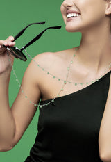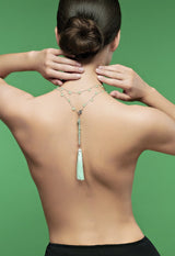 Игра текстур и бликов мистического лунного камня, аметиста, черного кварца, сапфира, граната, черного жемчуга, оникса и самого зимнего камня, снежного обсидиана. В этом благородном гарнитуре скрывается глубина чувств, шик и блестящая роскошь праздника.