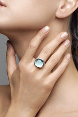 The silver ring of the original form is decorated with a natural green amethyst. It's just a celebration of color and form that will always be with you.