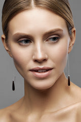 Joyful drops are famous long earrings with a raw stone. The silver chain with original design doesn’t let your earring slide. These light earrings were hand made from silver and smoky quartz. They swing slightly, so that the stones can catch the light from all sides.