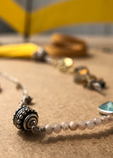 Amethyst, fluorite and shimmering aquamarine, turquoise and magic moonstone.